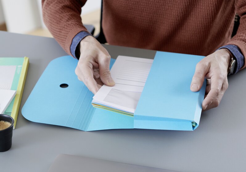 Die Organisationsmappen aus Papier in unzähligen Farben erleichtern die Ordnung ungemein - stapelbar und beschriftbar.