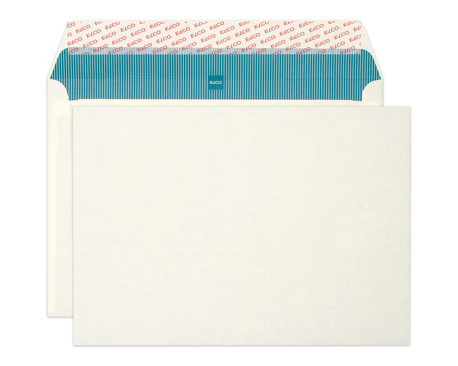 100% Recyclingpapier, Optifix-Haftklebeverschluss und Innendruck grau gestreift.