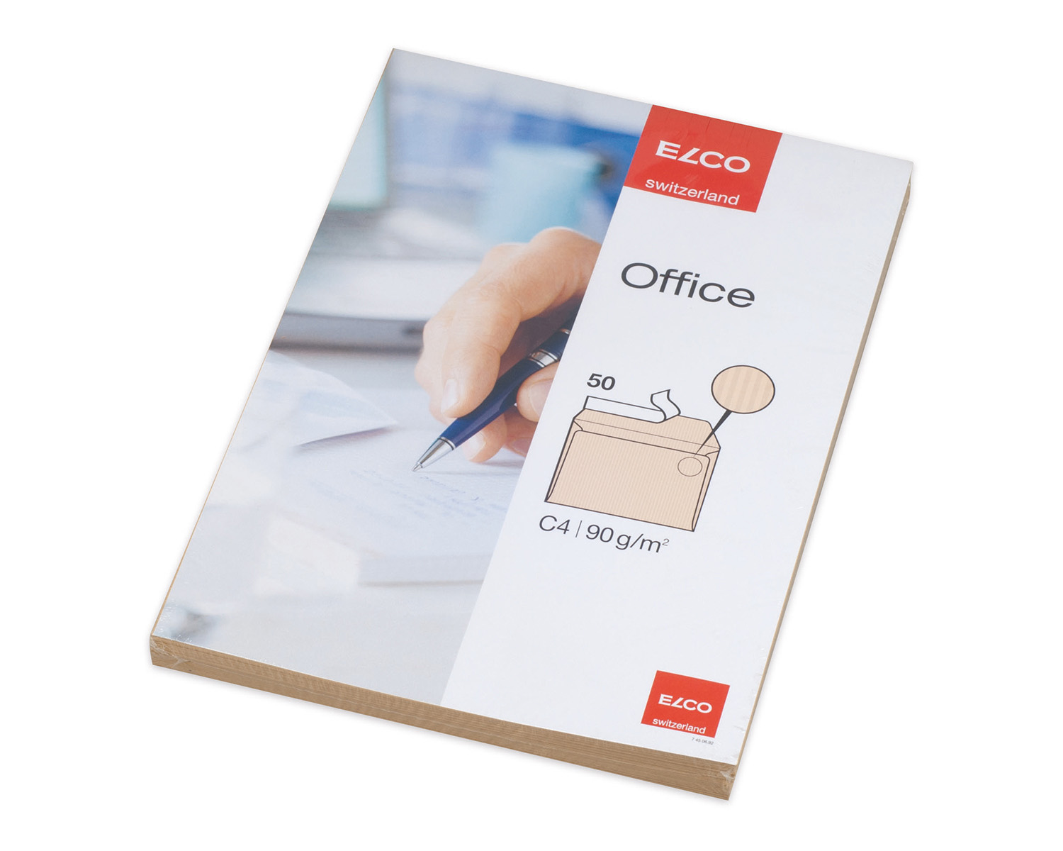 C4-Kuvert braun, gerippt, 90 g/m², ohne Fenster, mit Haftklebeverschluss in der Cello-Zip-Kleinpackung à 50 Stk. Lasertaugliche Qualität und Funktionalität. FCS.