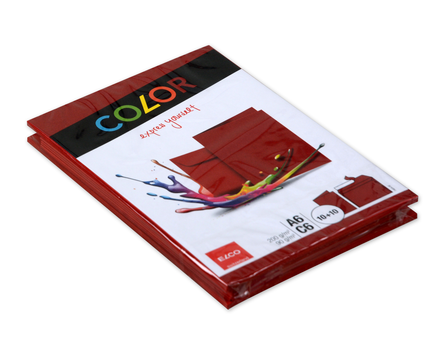 Color C6-Kuverts, rot ohne Fenster mit Haftklebeverschluss im Bund 10/10 Stk. Praktisch mit passender A6-Faltkarte zum Beschreiben. Der farbenfrohe FSC-Briefumschlag mit passender Karte.