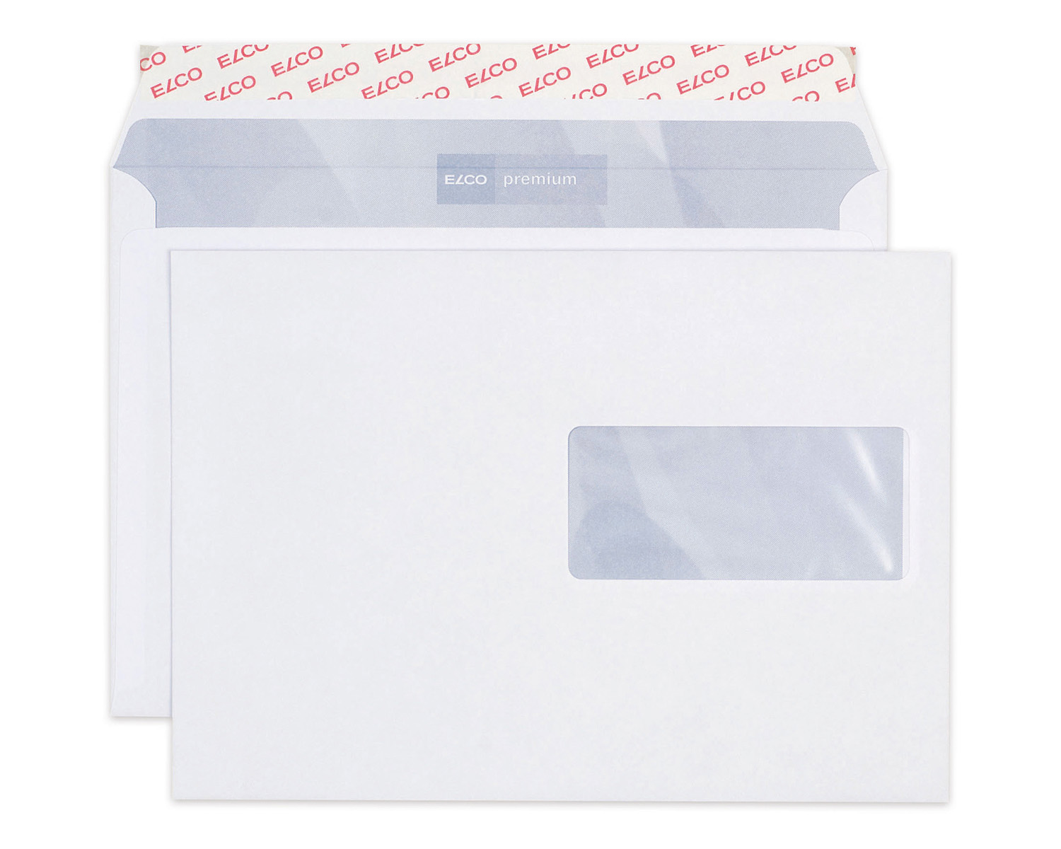 Hochweisses C5-Kuvert von ELCO mit Fenster rechts und Haftklebeverschluss in der praktischen Entnahme-Box. Kein zerknittern!
