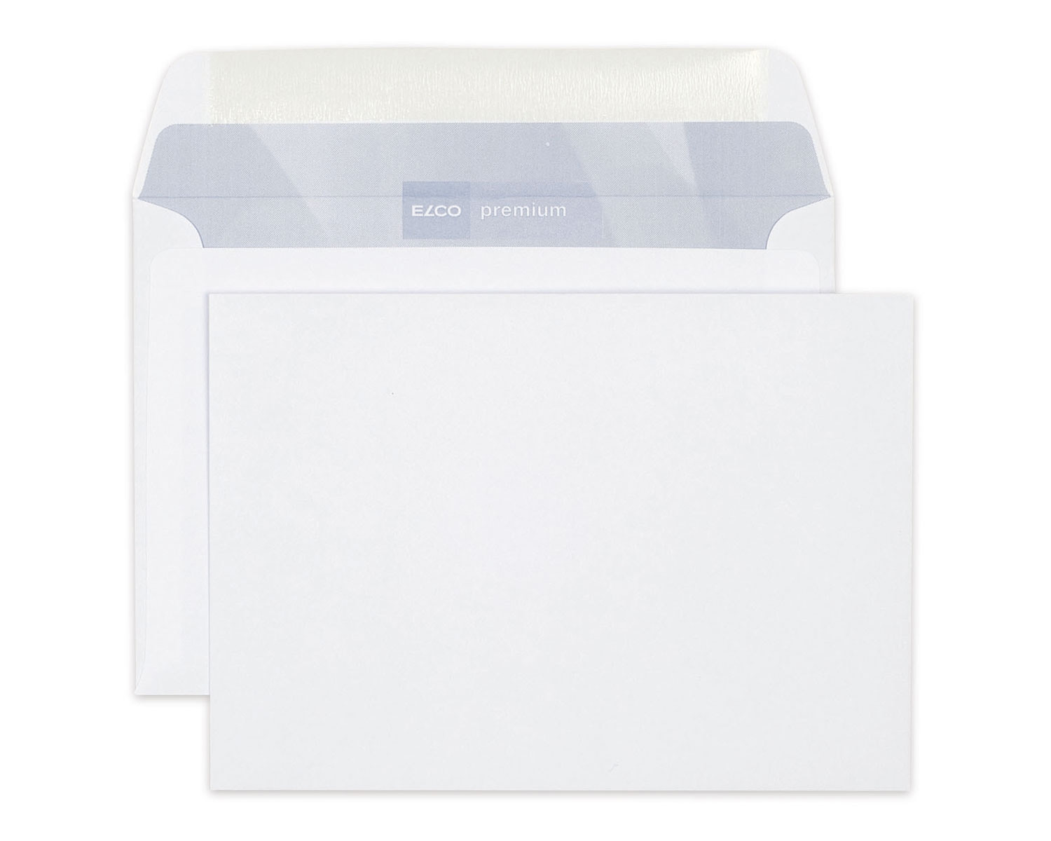 Hochweisses Premium C4-Kuvert, 100 g/m², ohne Fenster, Nassklebeverschluss in der praktischen 250 Stk. Entnahme-Schachtel. Innendruck "ELCO premium". FSC. Top Qualität aus der Schweiz.