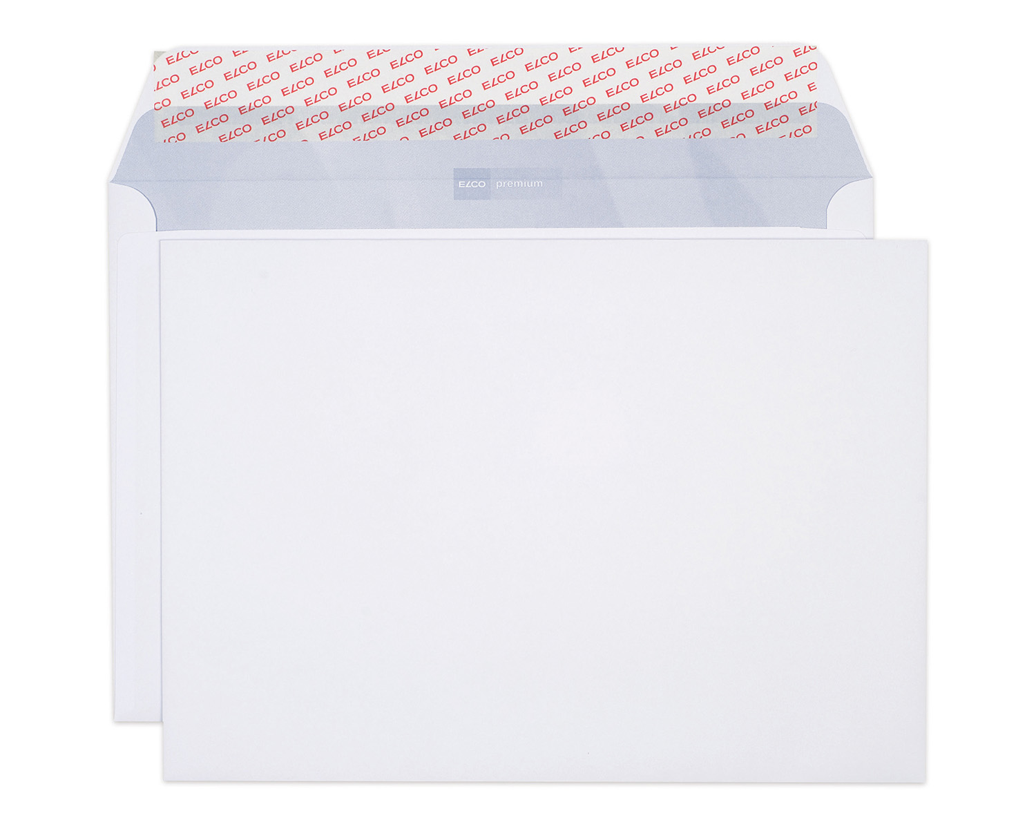 Hochweisser Premium B4-Umschlag von ELCO ohne Fenster mit Haftklebeverschluss in der 250 Stk.-Box. Mit Innendruck "ELCO premium". Spitzenqualität aus der Schweiz.