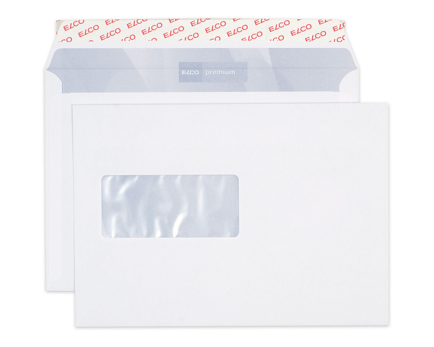 Hochweisses Premium C5-Kuvert von ELCO mit Fenster links und Haftklebeverschluss in der 500 Stk.-Box. Mit Innendruck "ELCO premium". Spitzenqualität aus der Schweiz.