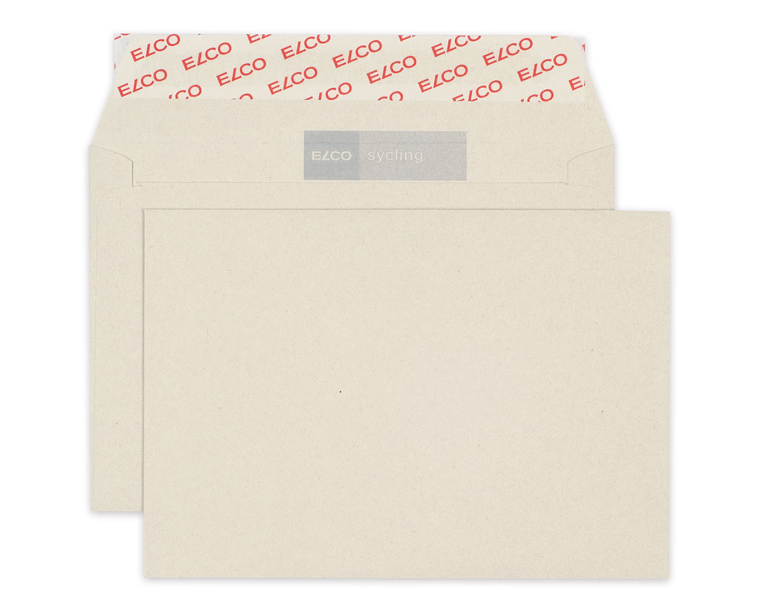 C6-Couvert, 80g/m², grau, ohne Fenster, mit Haftklebeverschluss und Innendruck "ELCO sycling" in der praktischen Entnahme-Schachtel. 100% chlorfrei, 100% Recycling. Blauer Engel.