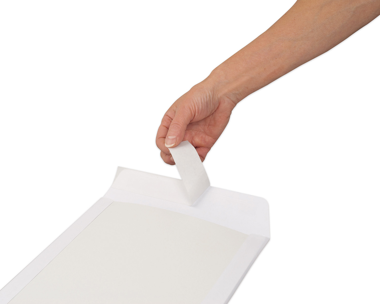 Weiss Kraft mit Optifix-Haftklebeverschluss auf der Schmalseite.