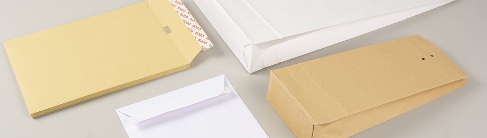 Die in braun, beige oder weiss erhältlichen Couverts sind u.a. mit Klotzboden für mehr Inhalt oder auch innenbeschichtet erhältlich.