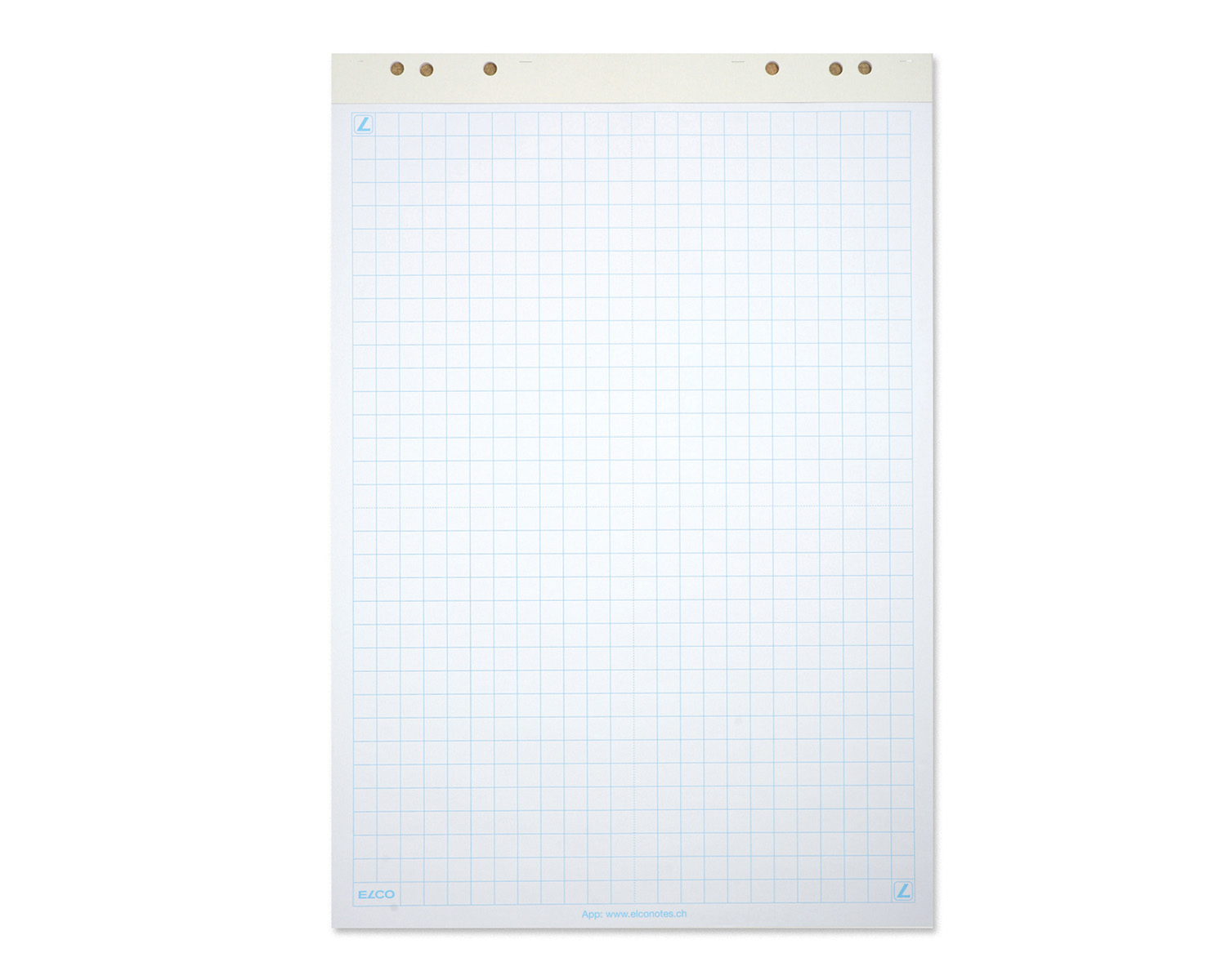 5 perforierte Flipchartblöcke á 25 Blatt weiss, 80 g/m², 65 x 94 cm, 25mm blau kariert mit "L" für die Verwendung mit der "ELCO Notes"-App. Die Rückseite kann blanco verwendet werden. Die Flipchartblöcke sind 6-fach gelocht und werden flach verpackt versendet.
