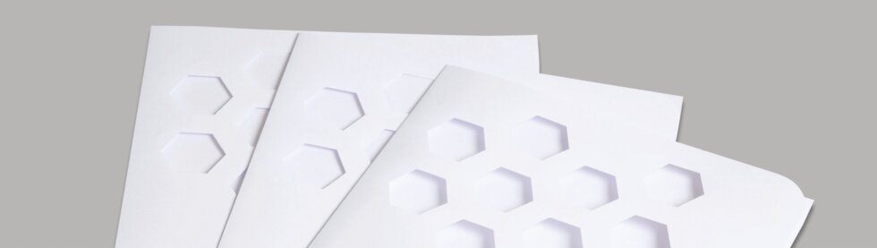 Das Sichtfenster besteht aus einem ausgestanzten Wabenmuster. 100% Papier, 120 g/m².