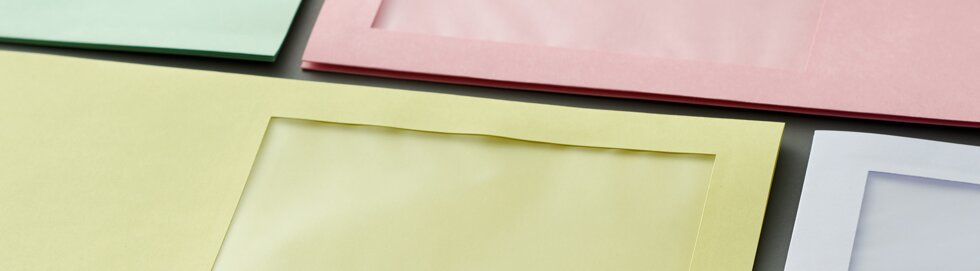 Unsere Ordo transport Einlegemappen mit extragrossem Sichtfenster in verschiedenen Farben.
