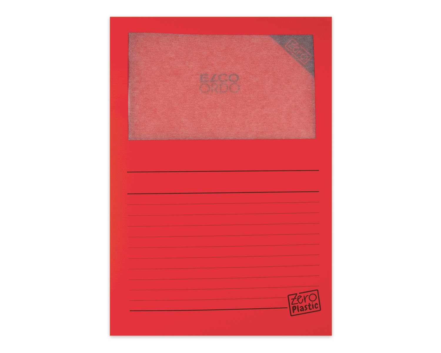 Schachtel à 100 Stk., intensivrot. 100% Papier, dank Sichtfenster aus biologisch abbaubarem Pergaminpapier. ELCO Ordo zero - die nachhaltige zero-plastic-Alternative zu den herkömmlichen Klarsichthüllen.