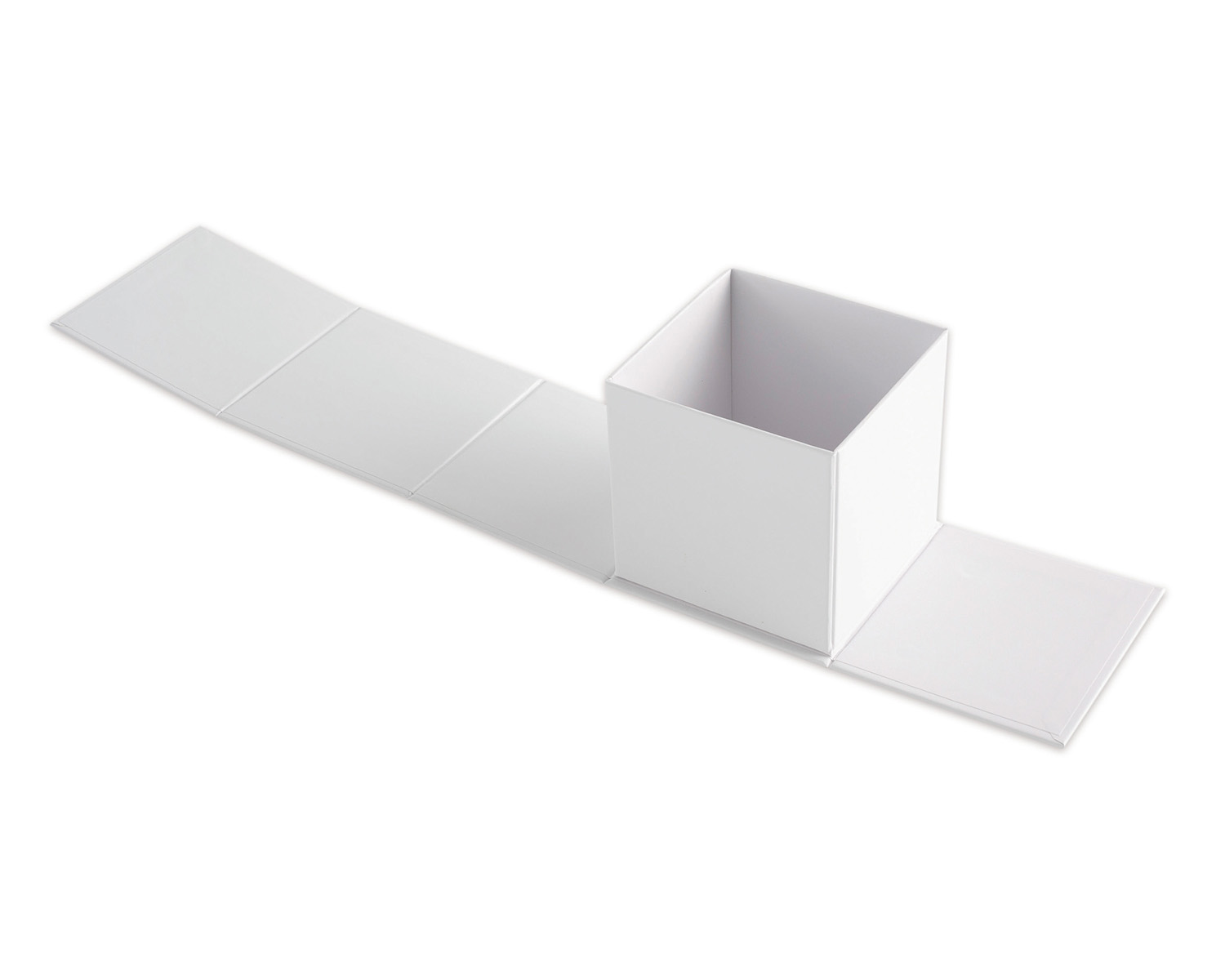 Hochwertige Aufbewahrungsbox aus Karton (1200 g/m²) mit weissem Papier (140 g/m²) beschichtet. Mit Magnetverschluss. Flach angeliefert und dank Haftklebestreifen einfach aufzustellen.