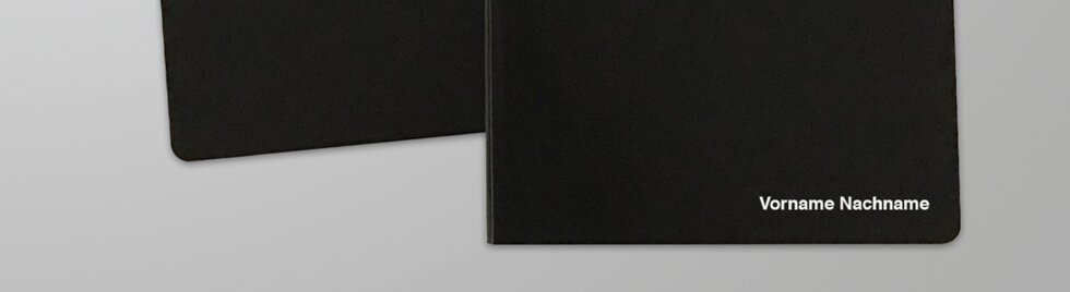 Personalisierte Notizbücher, gebunden mit Balacroncover in A4 und A5, kariert mit Rand.
