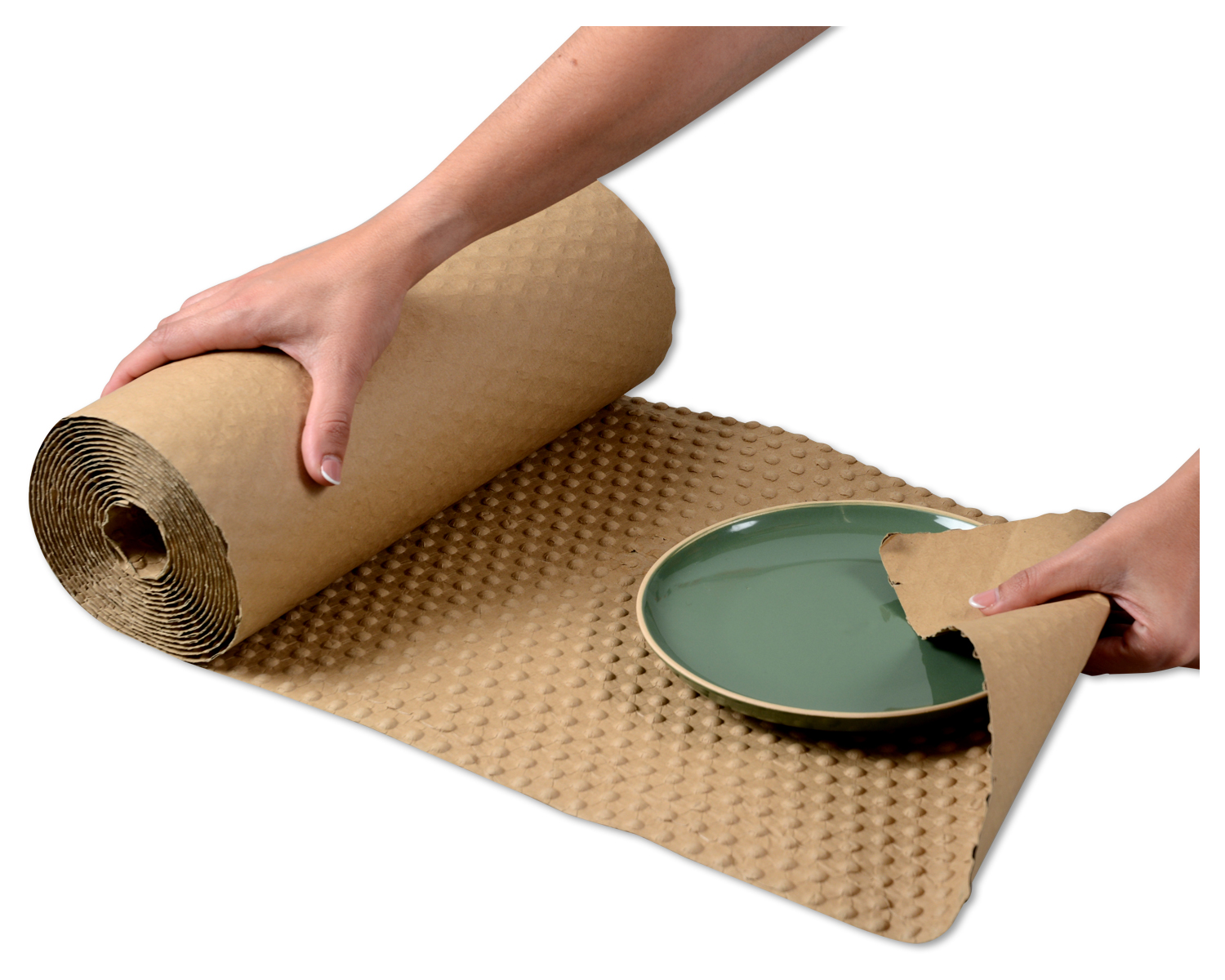 ELCO Luftpolsterpapier aus 100% Recyclingpapier, 2-lagig und ohne Klebstoffe – die nachhaltige Alternative zu Luftpolsterfolie aus Plastik. Die Polsterwirkung wird durch die geometrische Form der «Luftpolster» in Kombination mit der Verarbeitung des Papiers erzeugt. Dadurch ist das Luftpolsterpapier besonders stabil und reissfest. Es passt sich beim Verpacken flexibel an individuelle Produktformen an und leitet Stösse und Erschütterungen sicher ab.